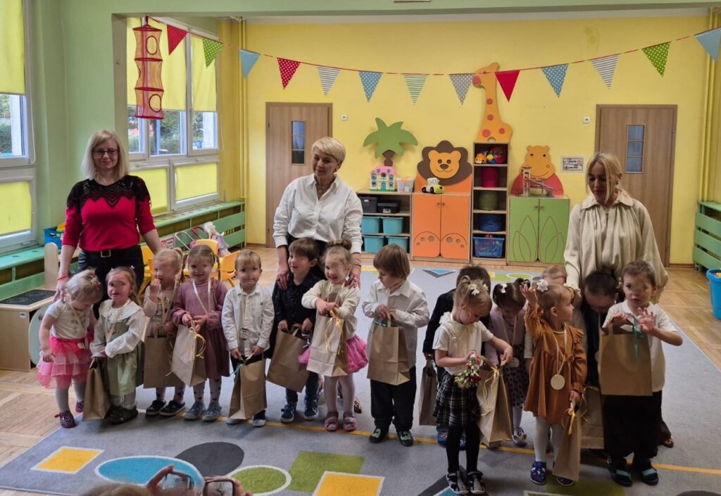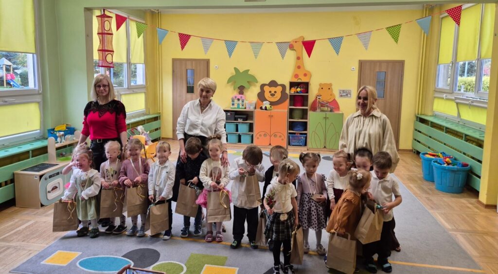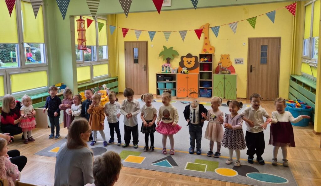 16 października w Grupie Żółtej odbyło się Pasowanie na Przedszkolaka z udziałem rodziców. Uroczystość pasowania to wielkie i ważne wydarzenie w życiu przedszkolaków. Z tej okazji dzieci przygotowały krótki program artystyczny, który zaprezentowały rodzicom. Następnie Pani Dyrektor pasowała maluchy na przedszkolaków. Dzieci otrzymały pamiątkowe medale i drobne upominki. Uroczystość zakończyła się wspólnym słodkim poczęstunkiem.