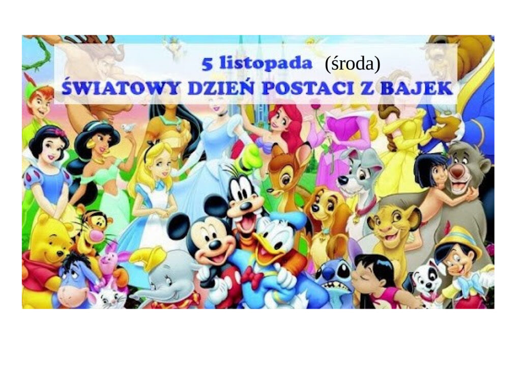 Światowy Dzień Postaci z Bajek obchodzony jest 5 listopada, w rocznicę urodzin Walta Disneya. Jest to święto mające na celu przypomnienie ulubionych bohaterów z bajek, zarówno tych czytanych, jak i oglądanych. To doskonała okazja do wspólnej zabawy, przebierania się za postacie z bajek oraz do rozwijania wyobraźni i zamiłowania do czytania u dzieci.