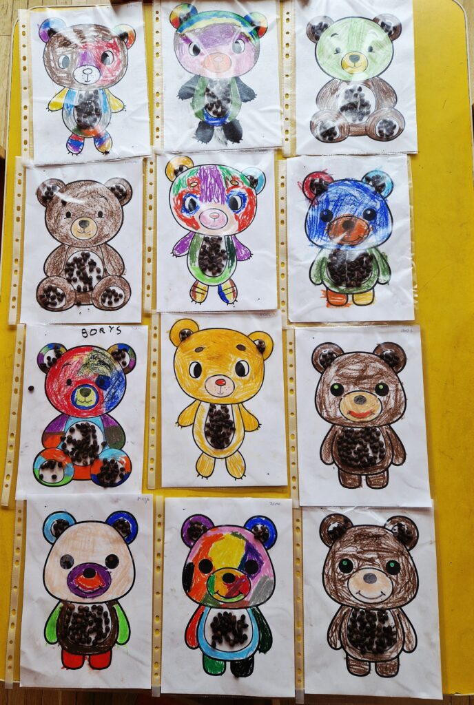 „MIŚ”-praca plastyczna (wyklejanie ziarnami kawy)