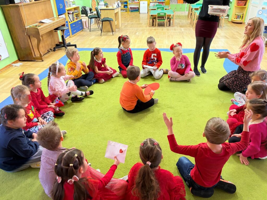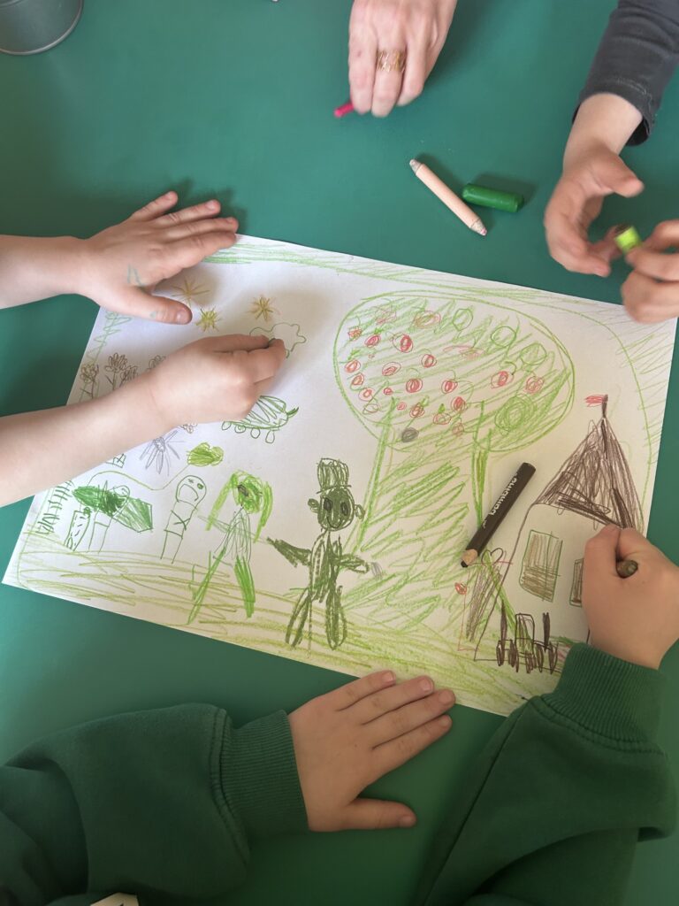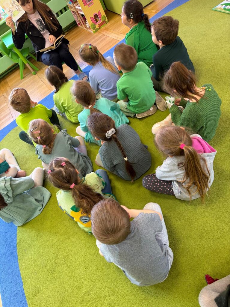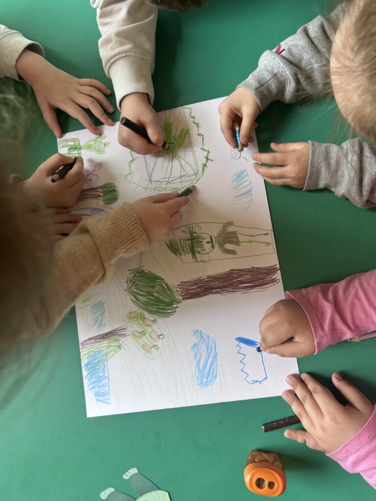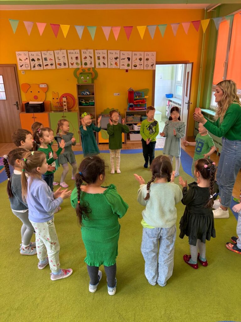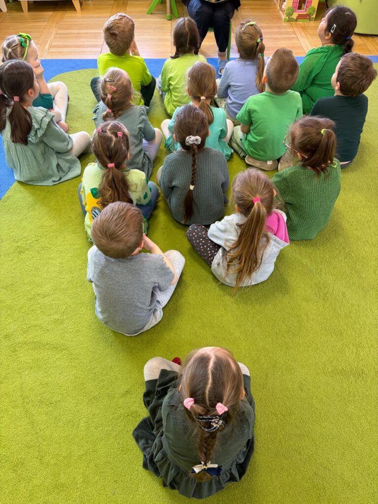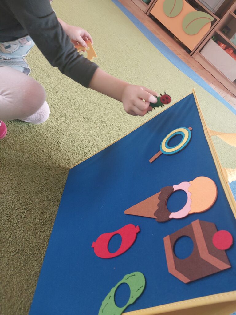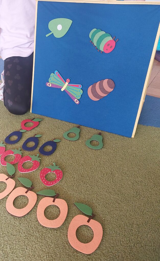 Grupa starszaków rozwijała i utrwalała słownictwo związane z jedzeniem oraz dniami tygodnia, wykorzystując angażującą metodę storytellingu na podstawie książki The Very Hungry Caterpillar.
