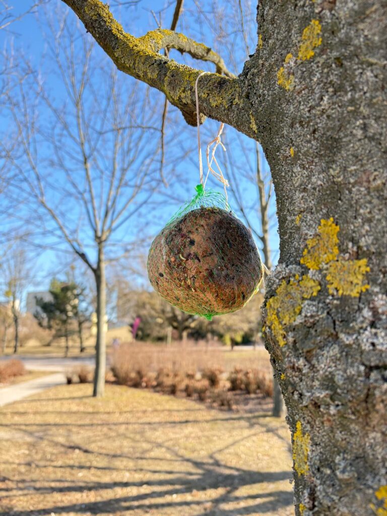 W czasie spaceru po naszym ogrodzie pamiętaliśmy o naszych skrzydlatych przyjaciołach. Zostawiliśmy przekąskę.