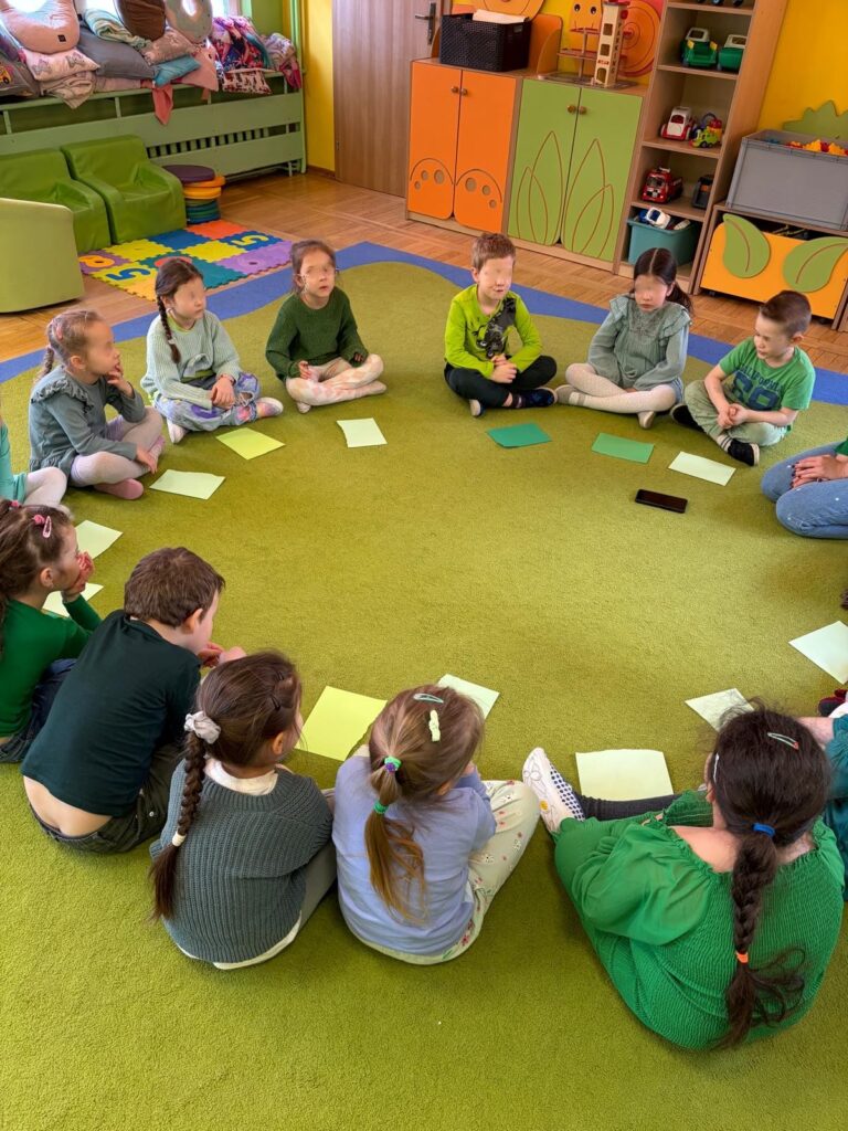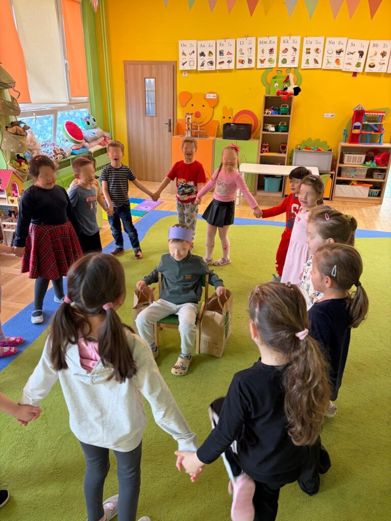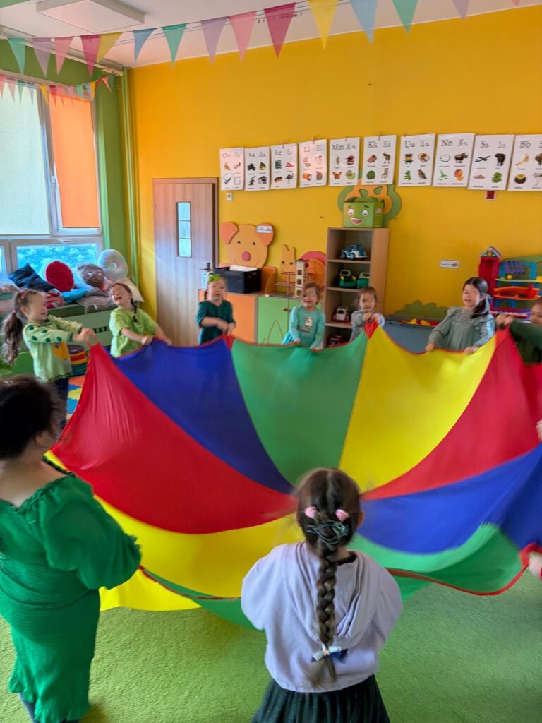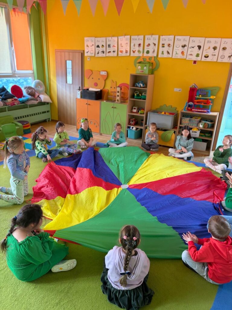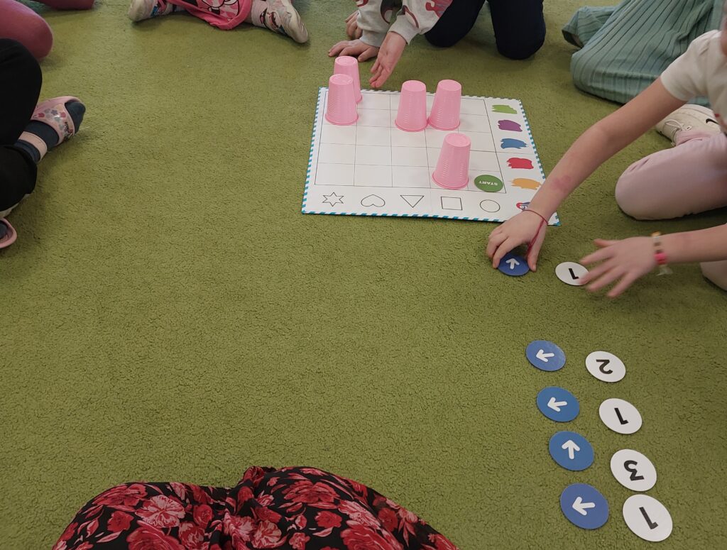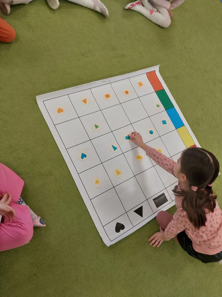 Podczas zajęć dzieci bawiły się figurami geometrycznymi, ucząc się rozpoznawania kształtów, kolorów oraz rozwijając wyobraźnię i logiczne myślenie. Nauka przez zabawę sprawiła wszystkim wiele radości!