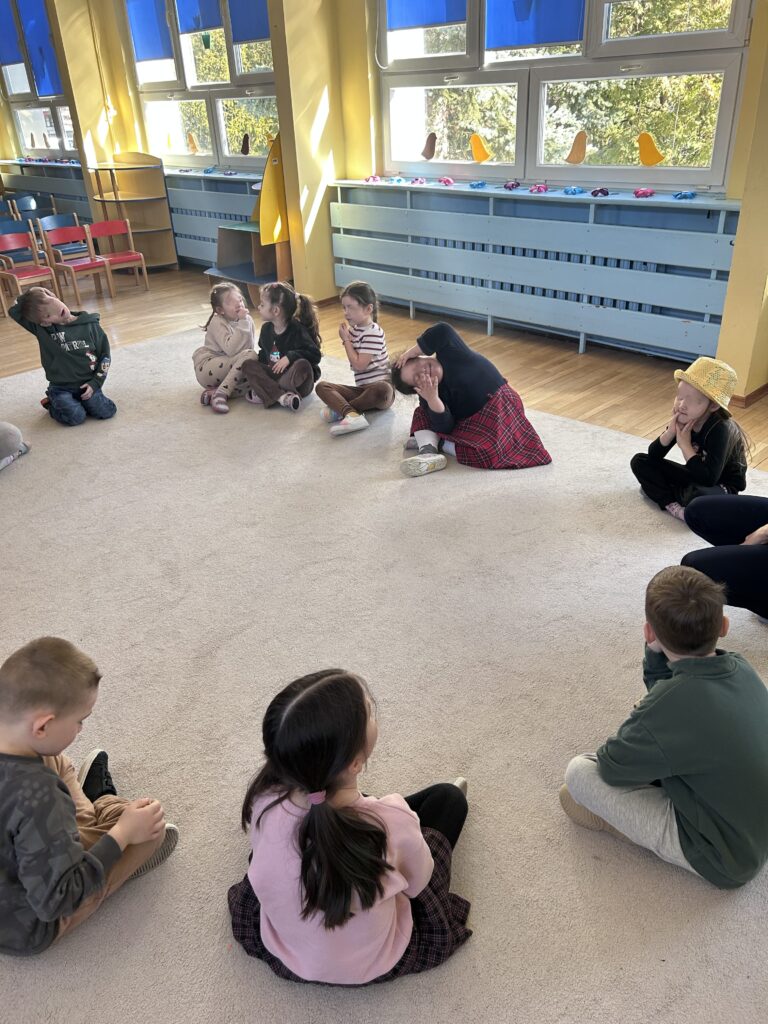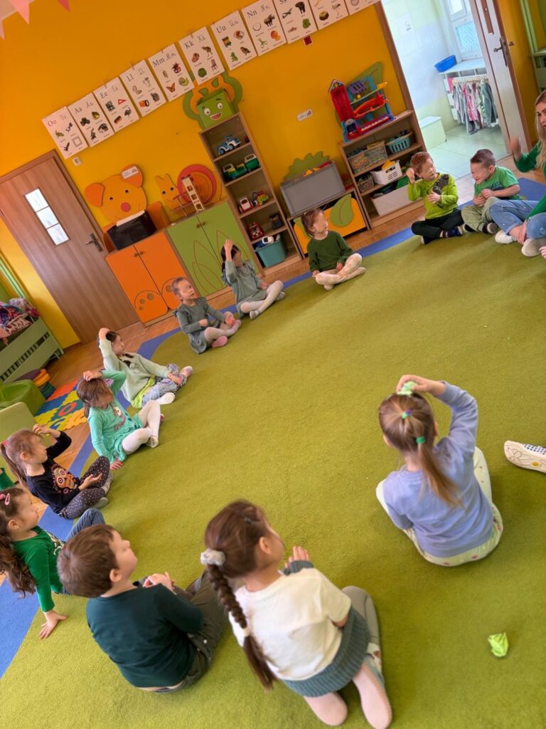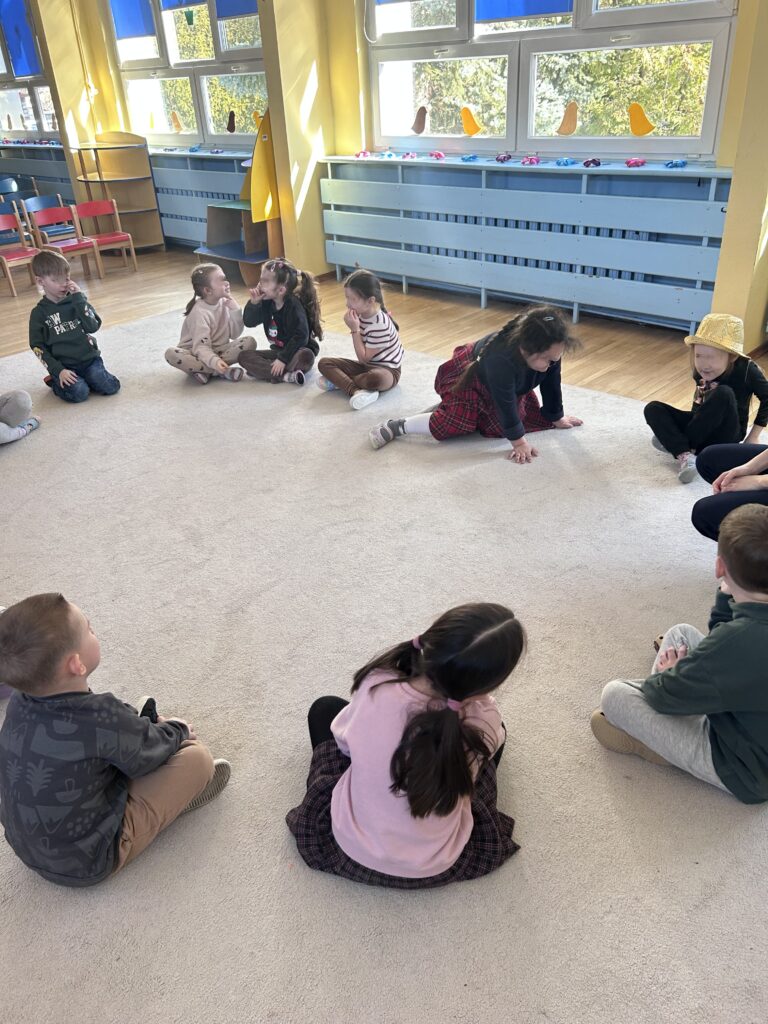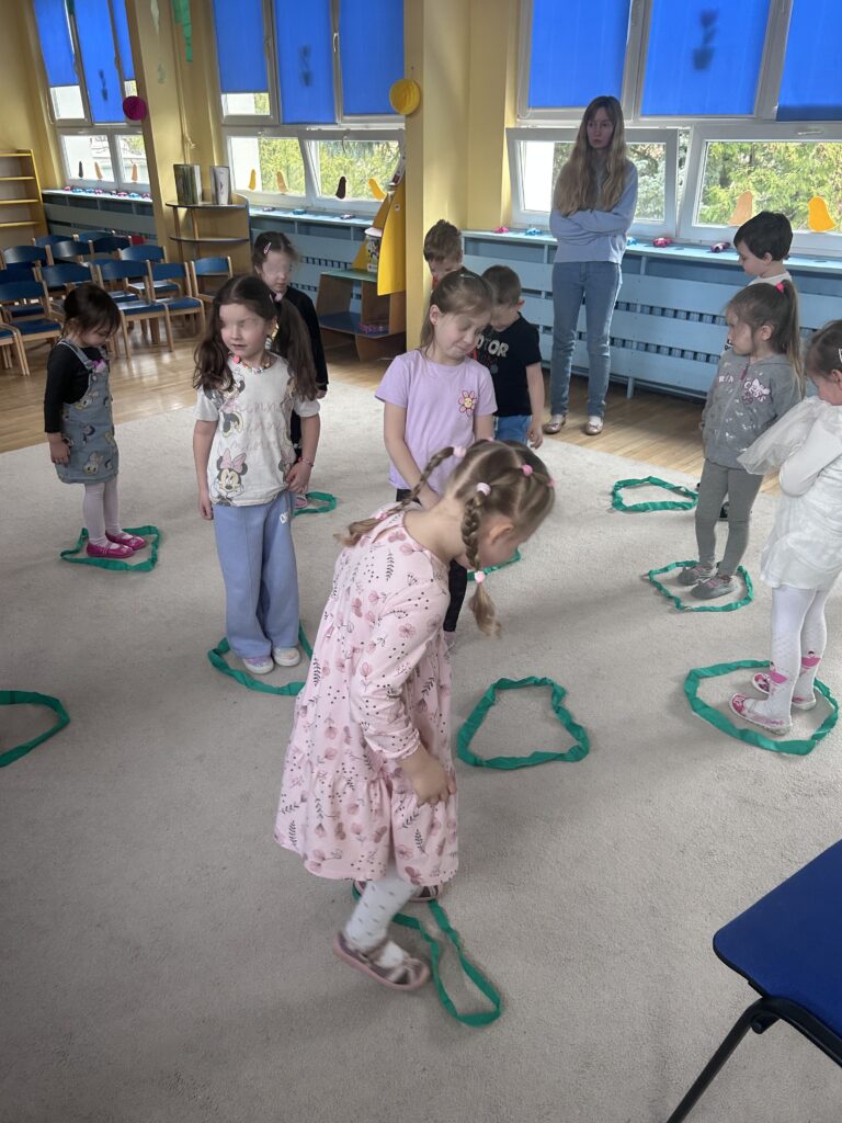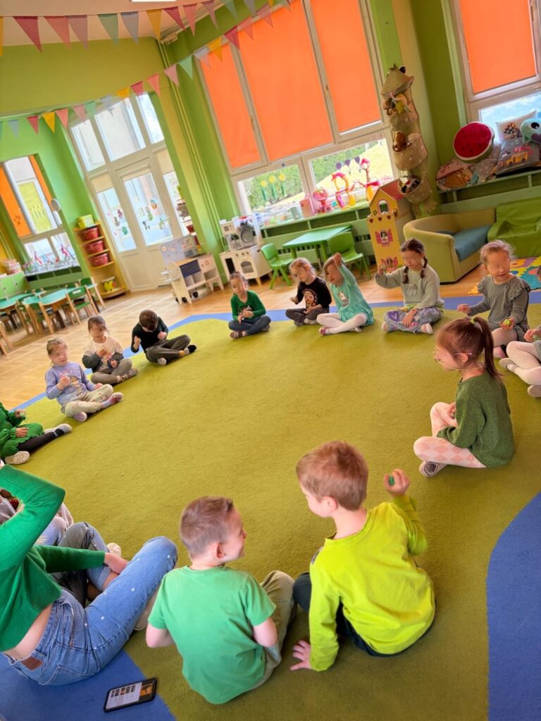 Nie zabrakło też muzycznych przygód — ćwiczyliśmy słuch muzyczny, rytm oraz reagowanie na dźwięki.