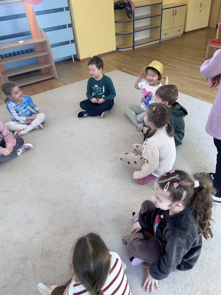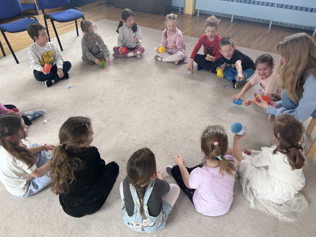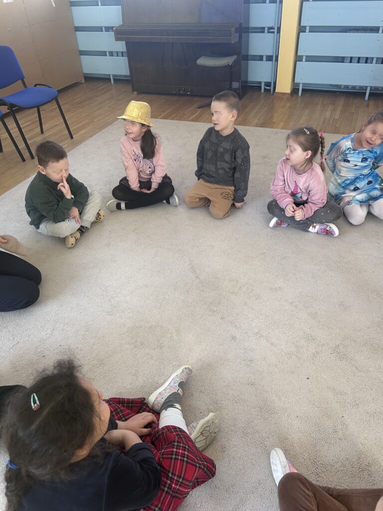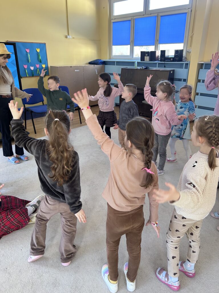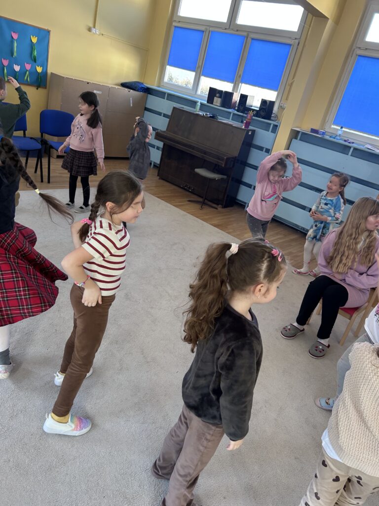Nie zabrakło też muzycznych przygód — ćwiczyliśmy słuch muzyczny, rytm oraz reagowanie na dźwięki.