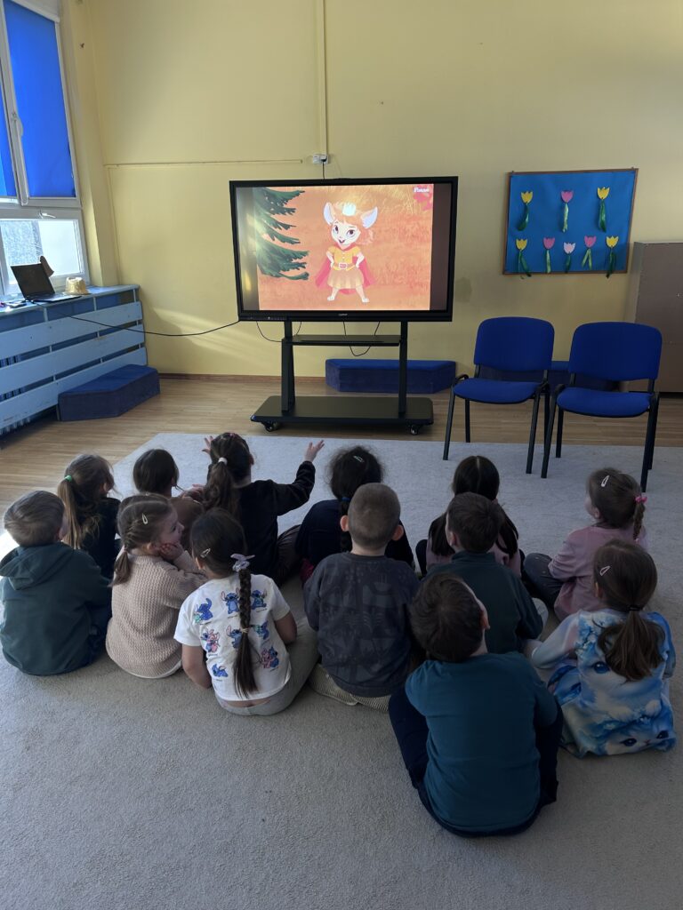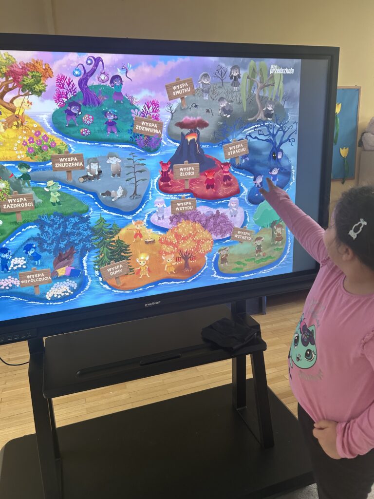 Podczas zajęć z języka angielskiego dzieci uczą się także cyfrowo – korzystamy z nowoczesnych narzędzi, które łączą naukę z zabawą i rozwijają kompetencje przyszłości.