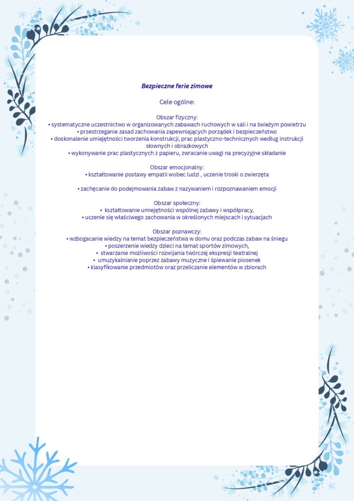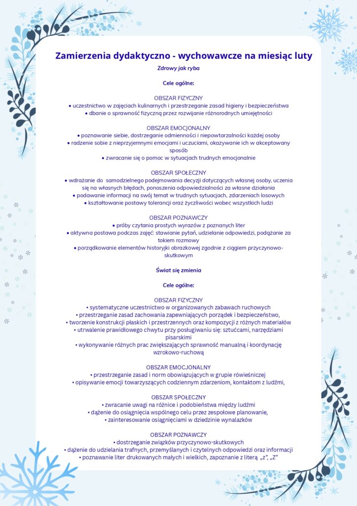 15 lutego w naszym przedszkolu obchodziliśmy Dzień Śniegu. Dzieci z wielkim zainteresowaniem poznawały, jak powstaje śnieg, skąd biorą się płatki śniegu i jakie mają kształty. Było dużo ciekawych rozmów, obserwacji i radości z zimowych odkryć.
